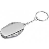 Chaveiro canivete 4 funções de metal liso(ambos lados). Possui: abridor de lata, lixa, lâmina de corte e abridor de garrafa.