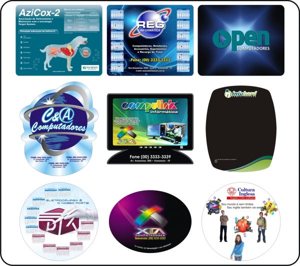 TRABALHAMOS COM OS MOUSE PADS EM VARIOS FORMATOS DE CORTE, PODEMOS FAZER REDONDO , QUADRADO , OVAL , FORMATO DE MONITOR DE COMPUTADOR , FORMATO DE CARTUCHO DE TINTA , RETANGULAR O TIPO DE FORMATO QUE O CLIENTE PRECISAR .